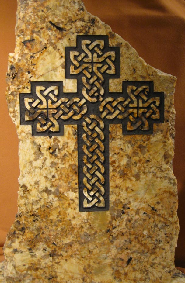 NW Coast design and Mayan glyph. Both on Golden Tempest granite from Brazil.